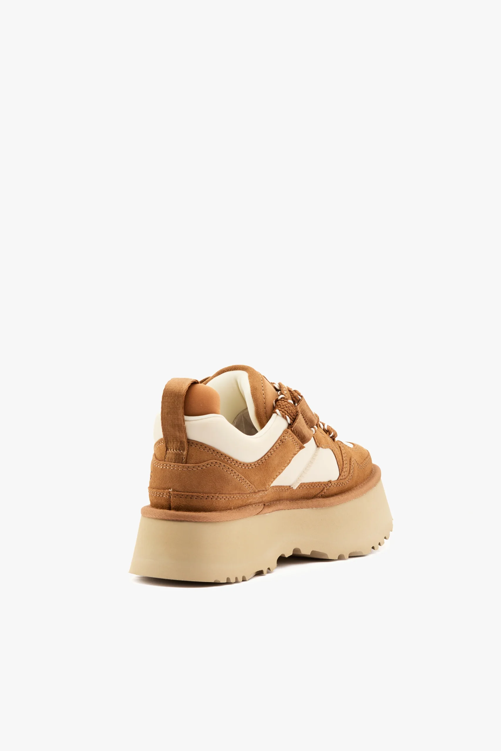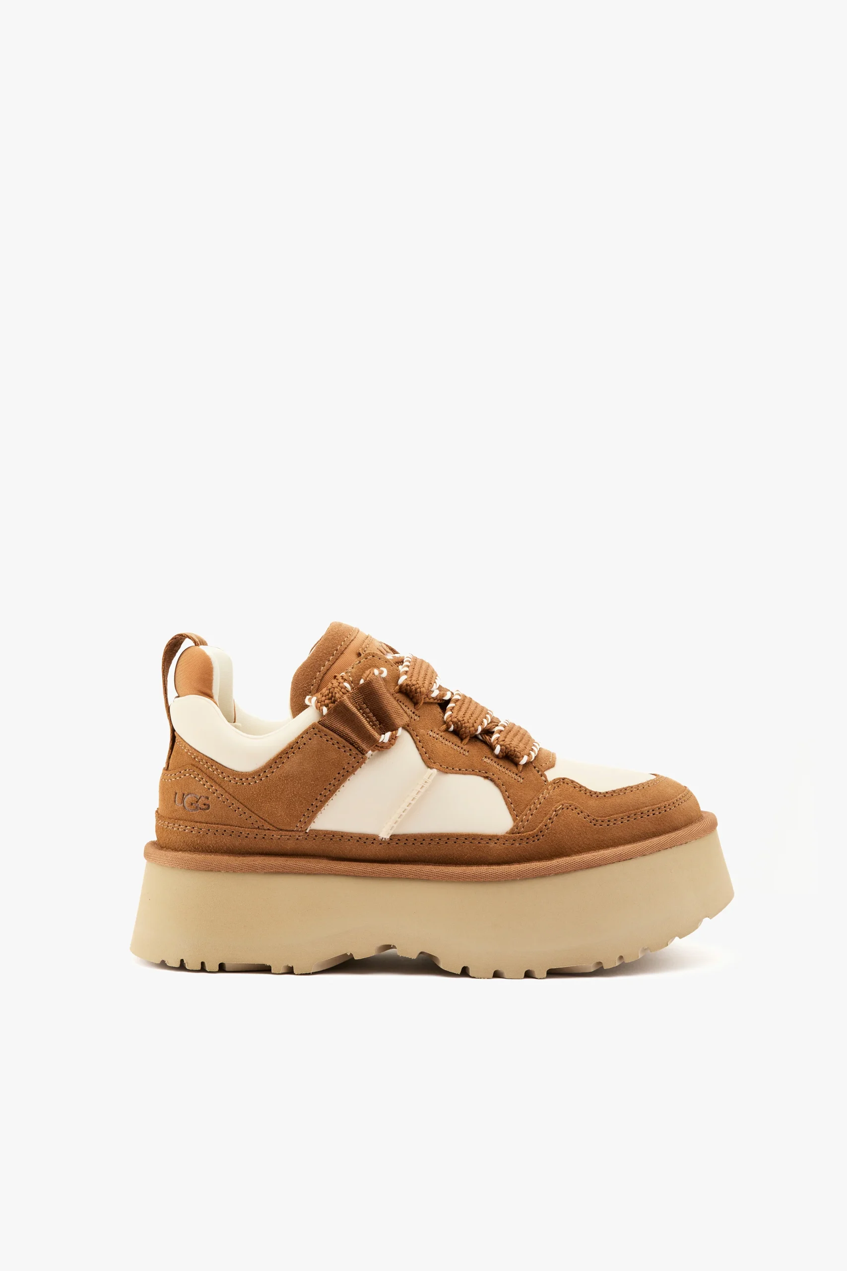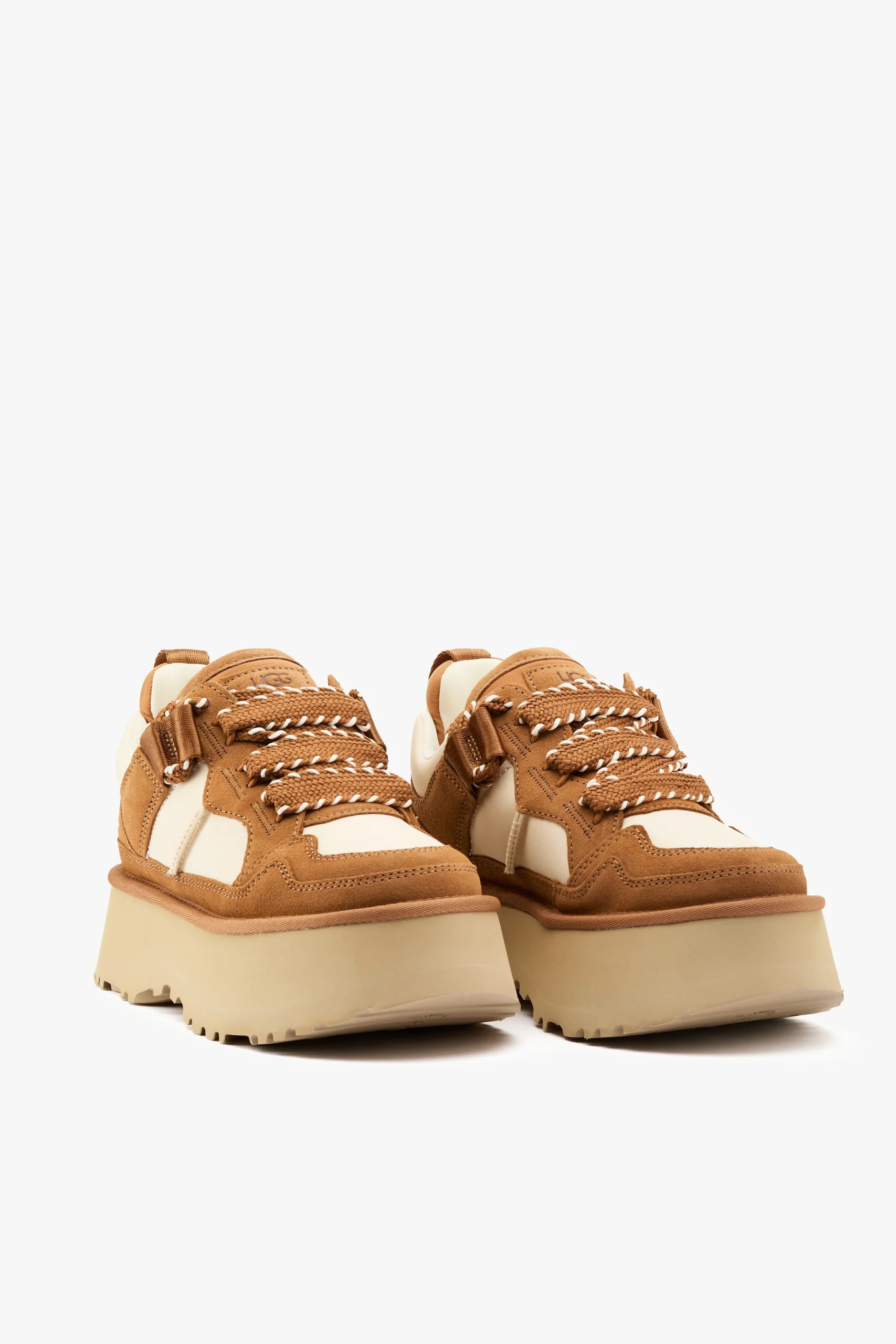 Sneaker astromel in camoscio chestnut e tessuto white, doppio laccio Sottopiede e fodera in tessuto Suola in gomma di 5 cm Calzata regolare