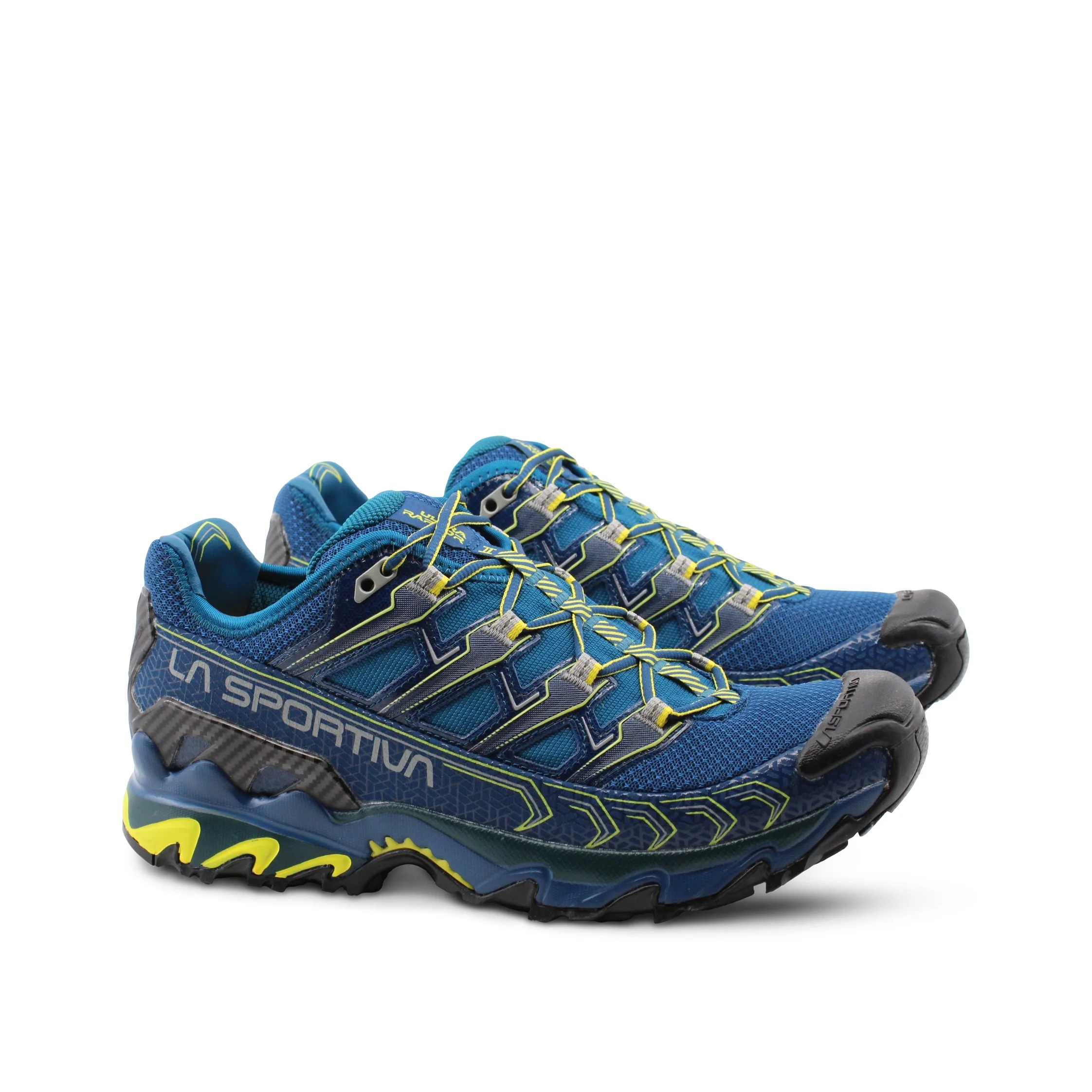 Scarpa da mountain running da uomo La Sportiva Ultra Raptor II in tesssuto e materiale sintetico, con sottopiede removibile Otholite Hybrid in tessuto e suola FriXion in mescola altamente resistente allโabrasione, Impact Brake System e puntalino in gomma anti-urto integrato. Perfetta per utilizzi su terreni off-road e camminate in montagna Codice Modello: ZFHS050-B23Y07