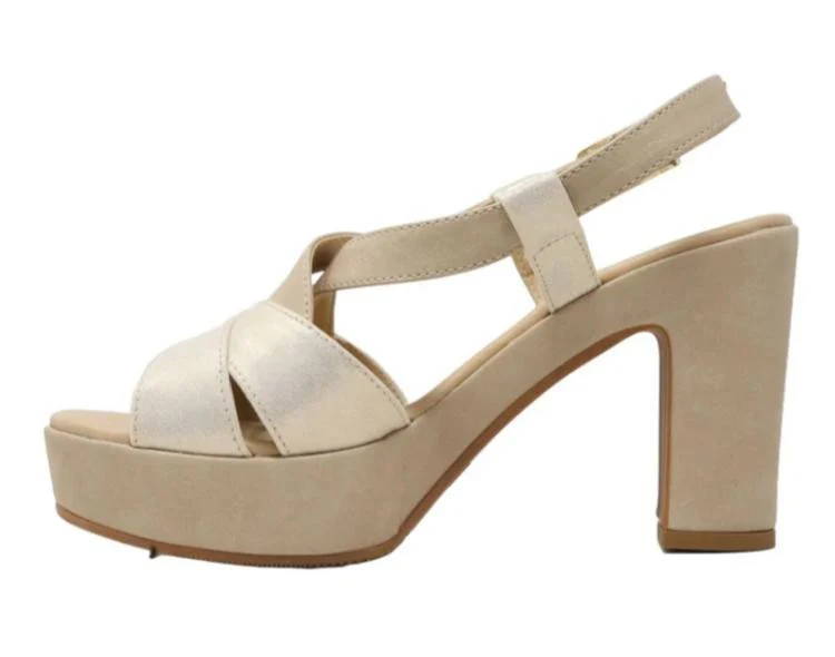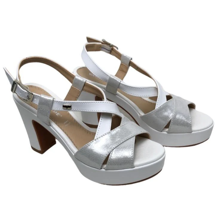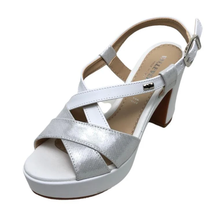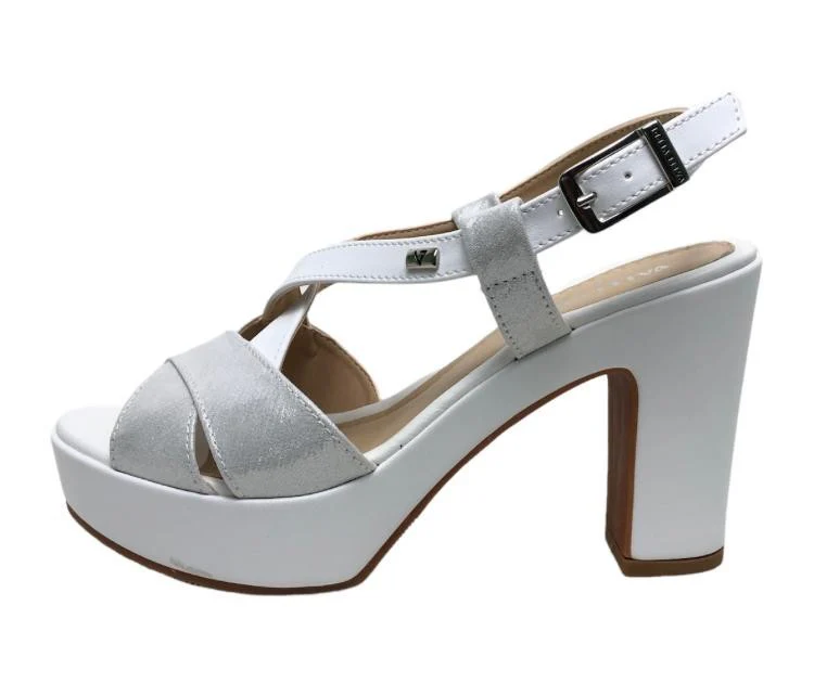 VALLEVERDE SANDALI PLATEAUX 32521 GOLD WHITE Sandali con un sottopiede in morbida pelle che garantisce comfort e supporto per tutta la giornata, questi sandali incarnano l’eleganza senza tempo, chiusura con cinturino regolabile, fodera in similpelle, altezza tacco 10 cm